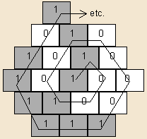 and arranged the binary digits in order on a spiral within a hexagonal lattice, like so: